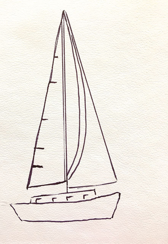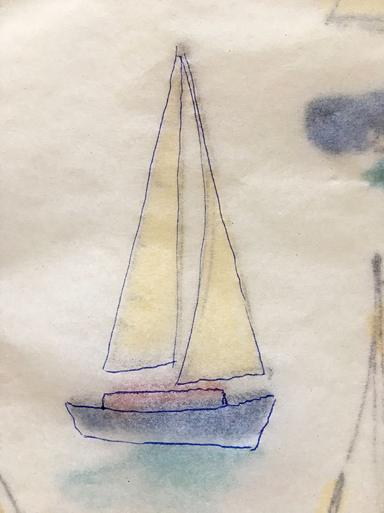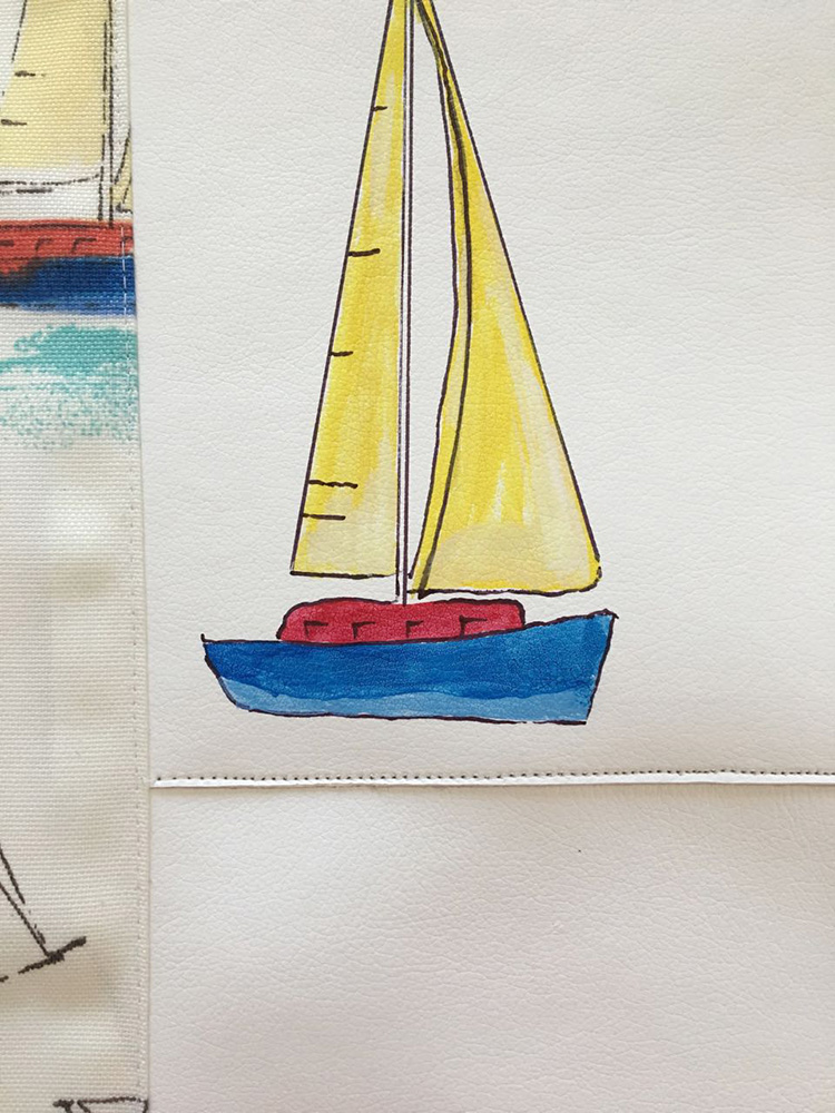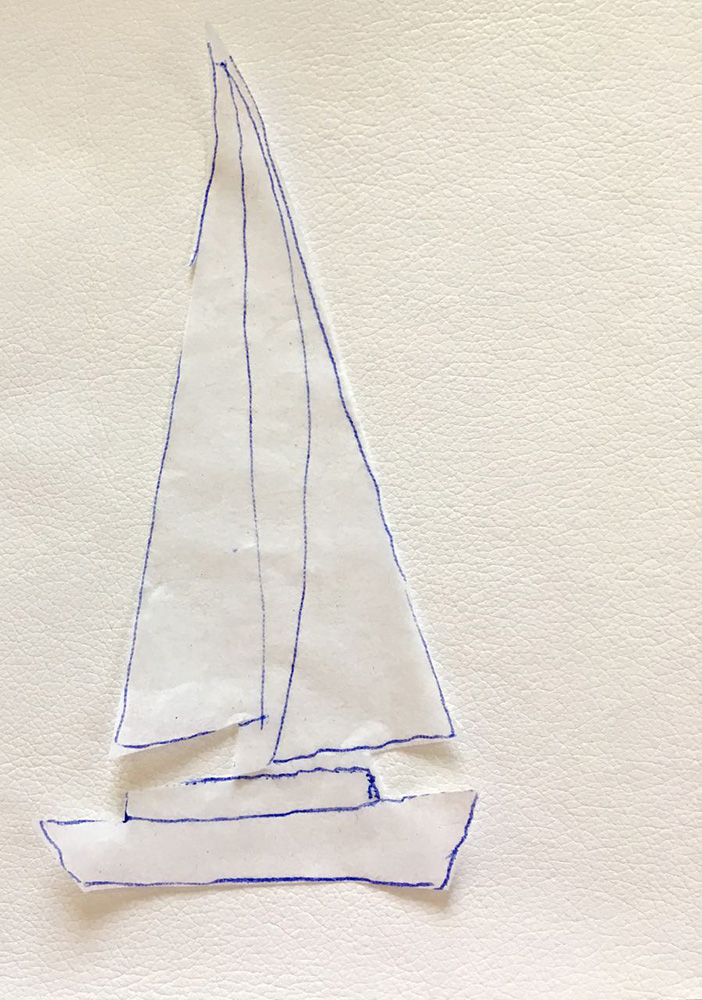 - Place tracing paper on the smallest of the fabric’s sailboat image. Trace the image.