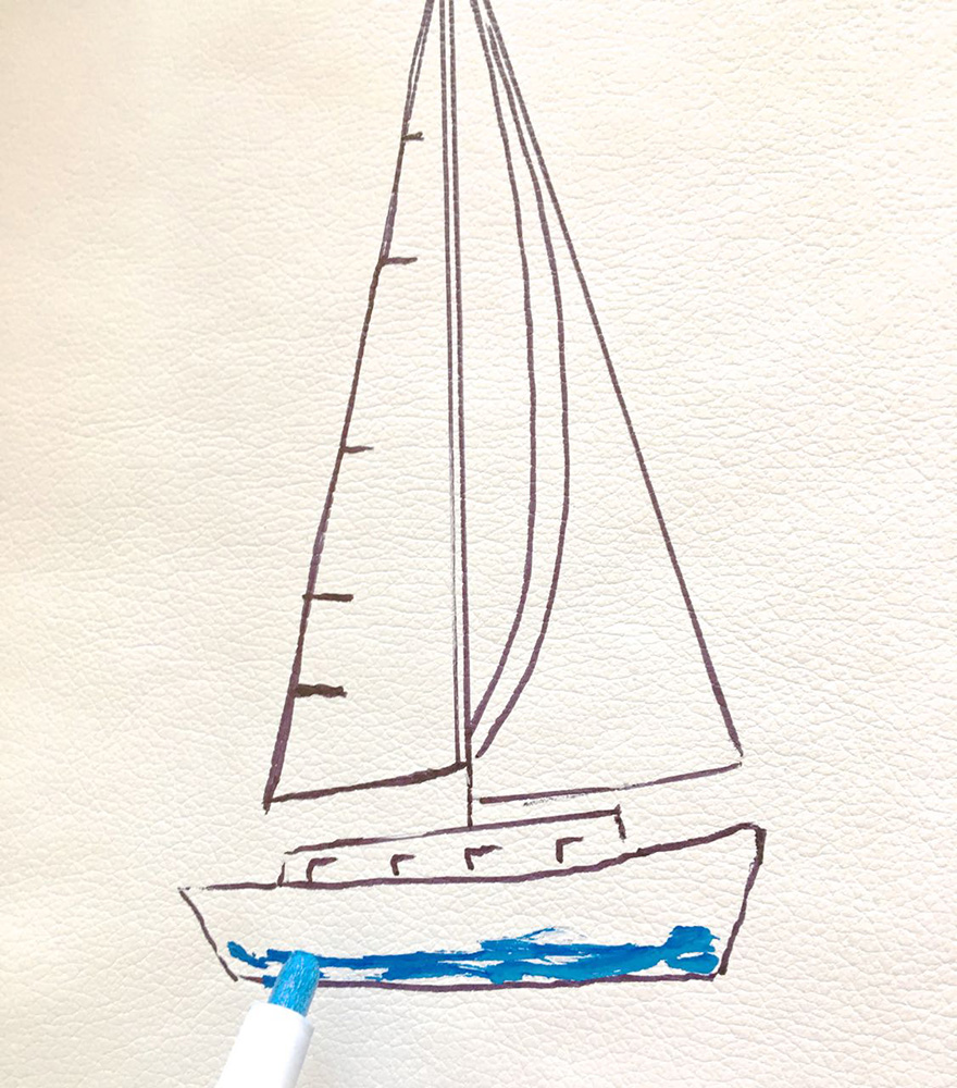 - Empty out the marker and fill it with only blue paint and fill the upper part of the boat.